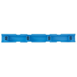 Glissez facilement le rail de la droite ou la gauche sur les 4 accroches murales. Les Modules Clip Grip et Crochet peuvent ensuite être clipsés et « bloqués » en utilisant l’une des nombreuses « encoches » dans le rail. Ceci empêchera les modules de glisser de part et d’autre du rail. 1 à 10 modules peuvent être placés sur le rail (maximum 5 Modules Clip Grip et 10 Modules Crochet). Le Module Clip Grip peut recevoir des outils d’un diamètre de 28 à 33mm. Des outils pesant jusqu’à 3 kg peuvent être suspendus aux crochets. Fournit avec 3 Modules Clip Grip et 2 modules Crochet. Le rail et les Modules sont facilement démontables pour un nettoyage et un remplacement facilité.