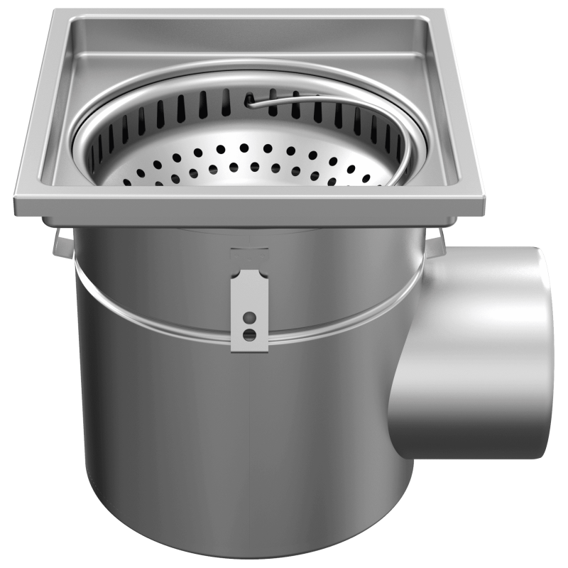 Siphon de sol hygiénique 160 - sortie latérale avec panier intégré