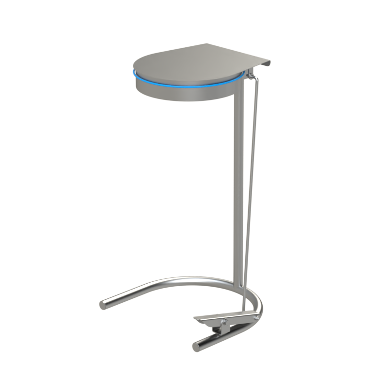 Acinox conçoit un support pour sacs poubelle sur pied avec couvercle avec double cerclage sans élastique.